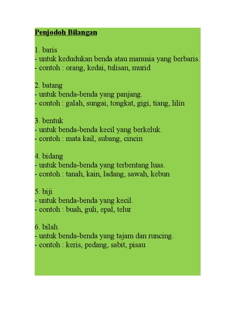 개 boleh digunakan untuk buah-buahan makanan dan ermapa lagi ye. PENJODOH BILANGAN Modul Latih tubi Tatabahasa. A rumpun b batang c deret 2 Pak Samad menebas rumput di kebun menggunakan se__________ parang.